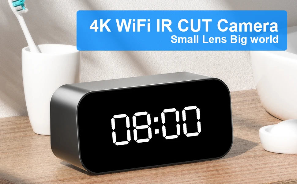 Mini HD4K clock camera, supports remote viewing, mobile detection, loop storage, home nanny style mini WIFI camera